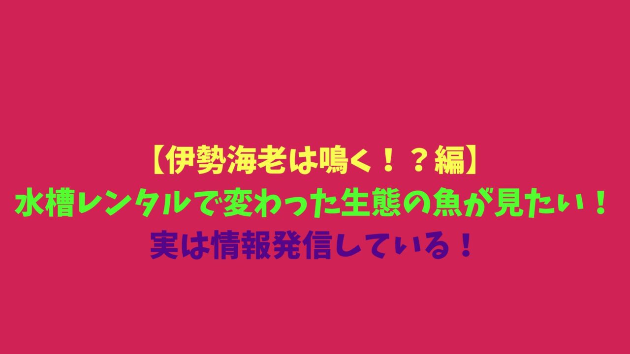 - 【伊勢海老は鳴く!?編】水槽レンタルで変わった生態の魚が見たい!実は情報発信している! - 2025-10-18
