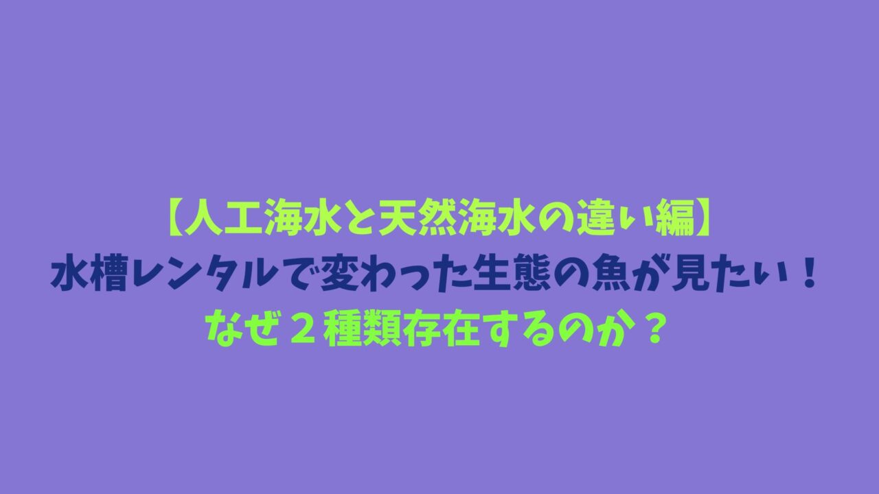 - 【人工海水と天然海水の違い編】水槽レンタルで変わった生態の魚が見たい!なぜ2種類存在するのか? - 2025-11-15