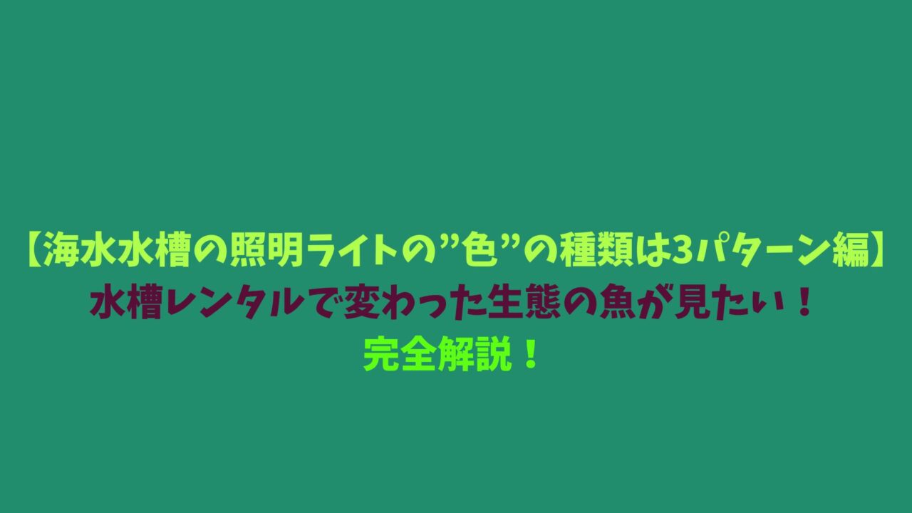 - 【海水水槽の照明ライトの”色”の種類は3パターン編】水槽レンタルで変わった生態の魚が見たい!完全解説! - 2025-12-24