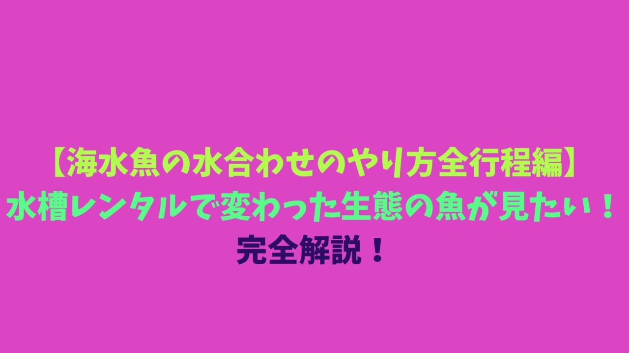 【海水魚の水合わせのやり方全行程編】水槽レンタルで変わった生態の魚が見たい!完全解説!