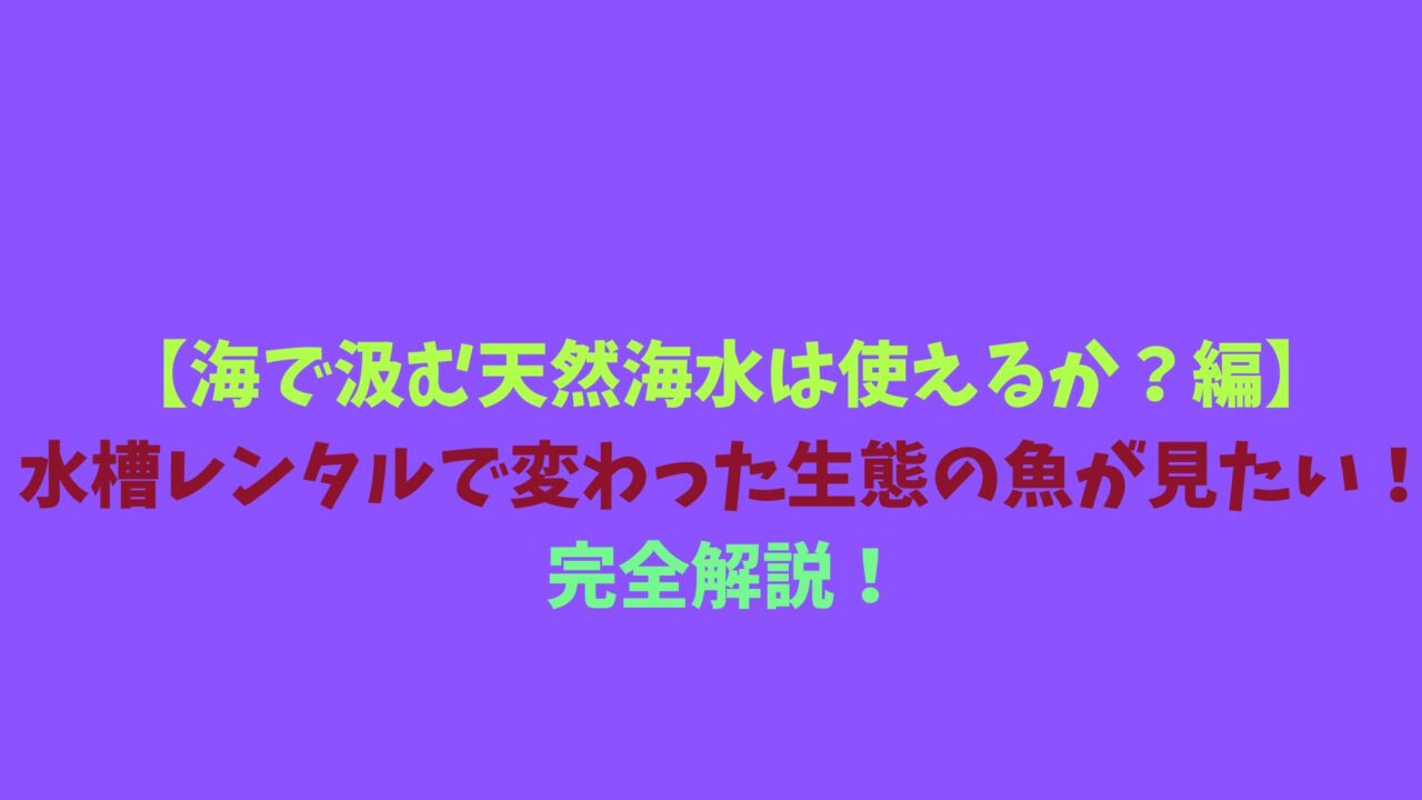 - 【海で汲む天然海水は使えるか?編】水槽レンタルで変わった生態の魚が見たい!完全解説! - 2025-12-04