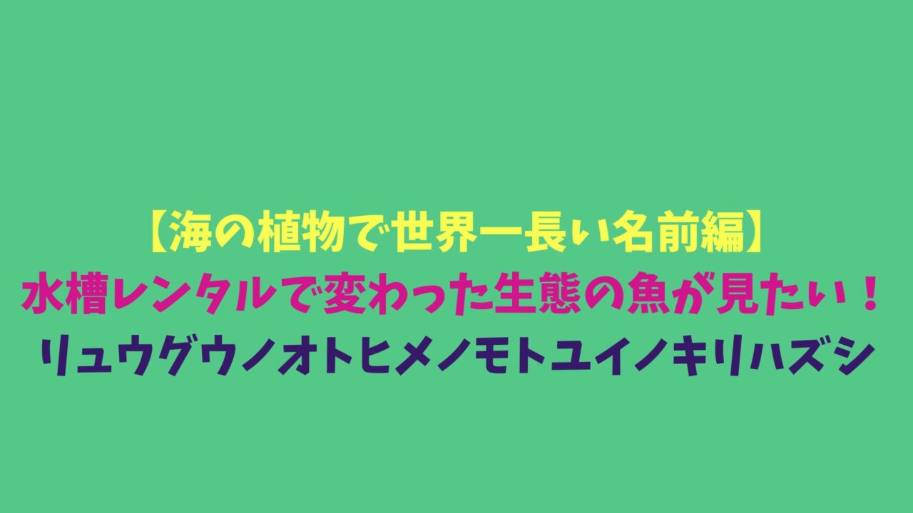 - 【海の植物で世界一長い名前編】水槽レンタルで変わった生態の魚が見たい!リュウグウノオトヒメノモトユイノキリハズシ - 2025-10-19